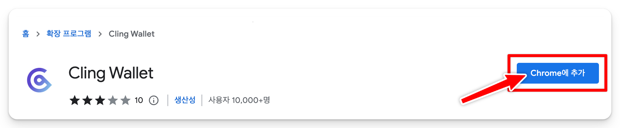 1. 구글 크롬 브라우저에서 Cling wallet 확장 프로그램을 설치합니다.